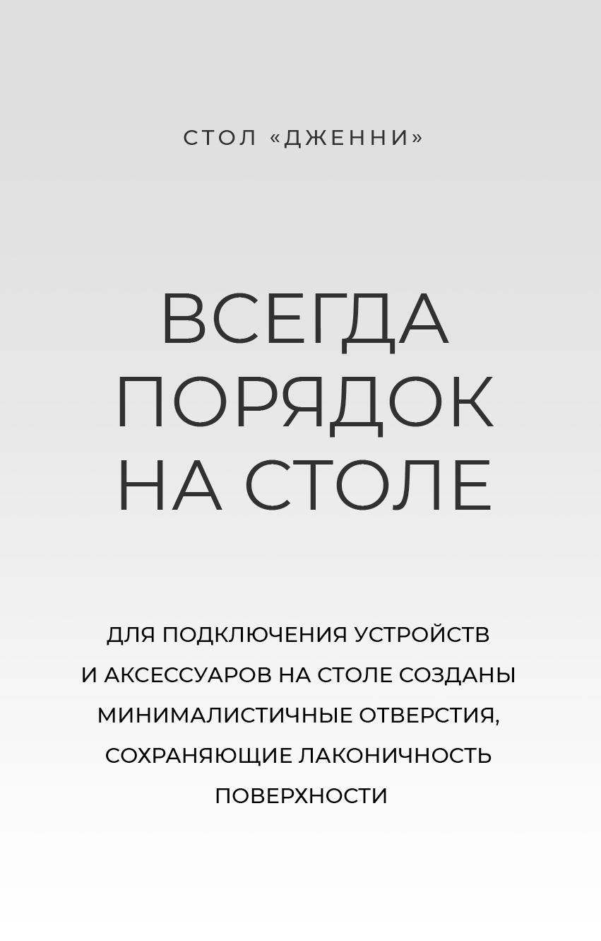 Для подключения устройств и аксессуаров на столе созданы минималистичные отверстия, сохраняющие лаконичность поверхности