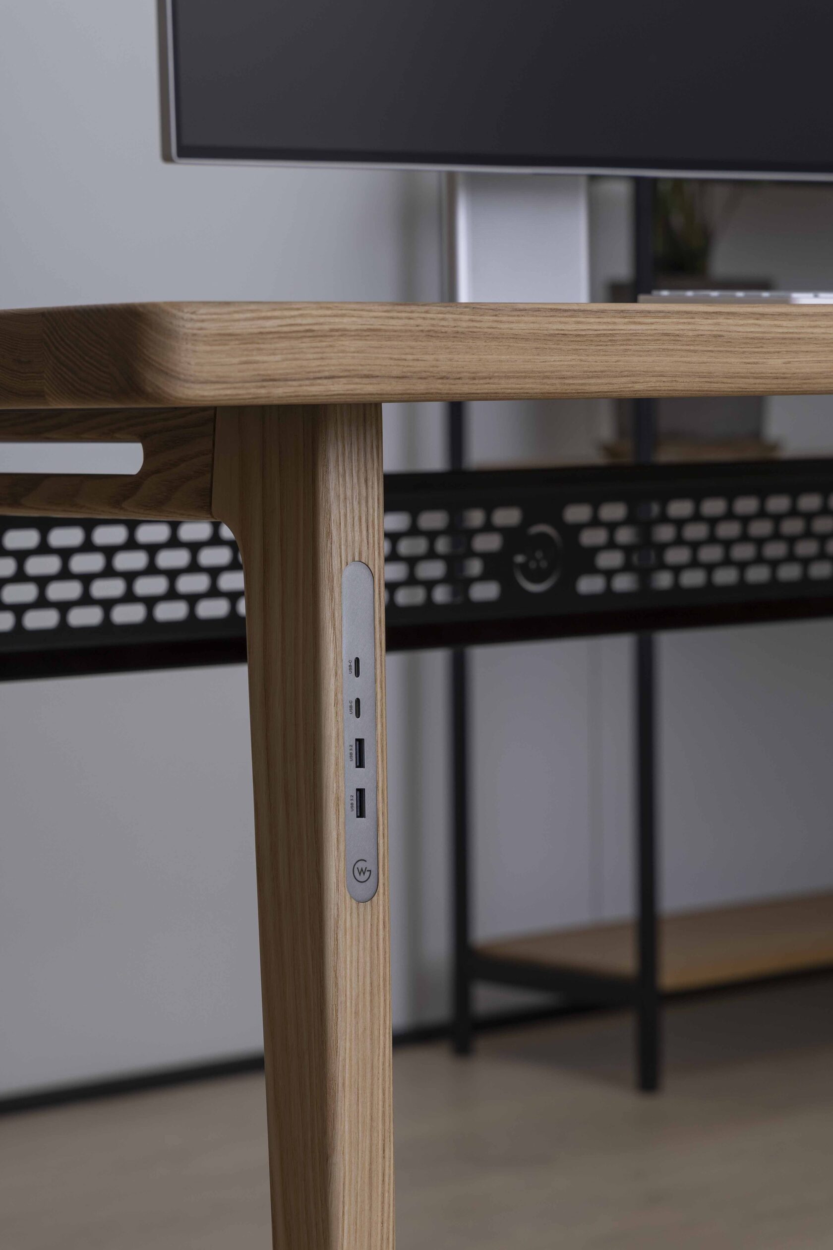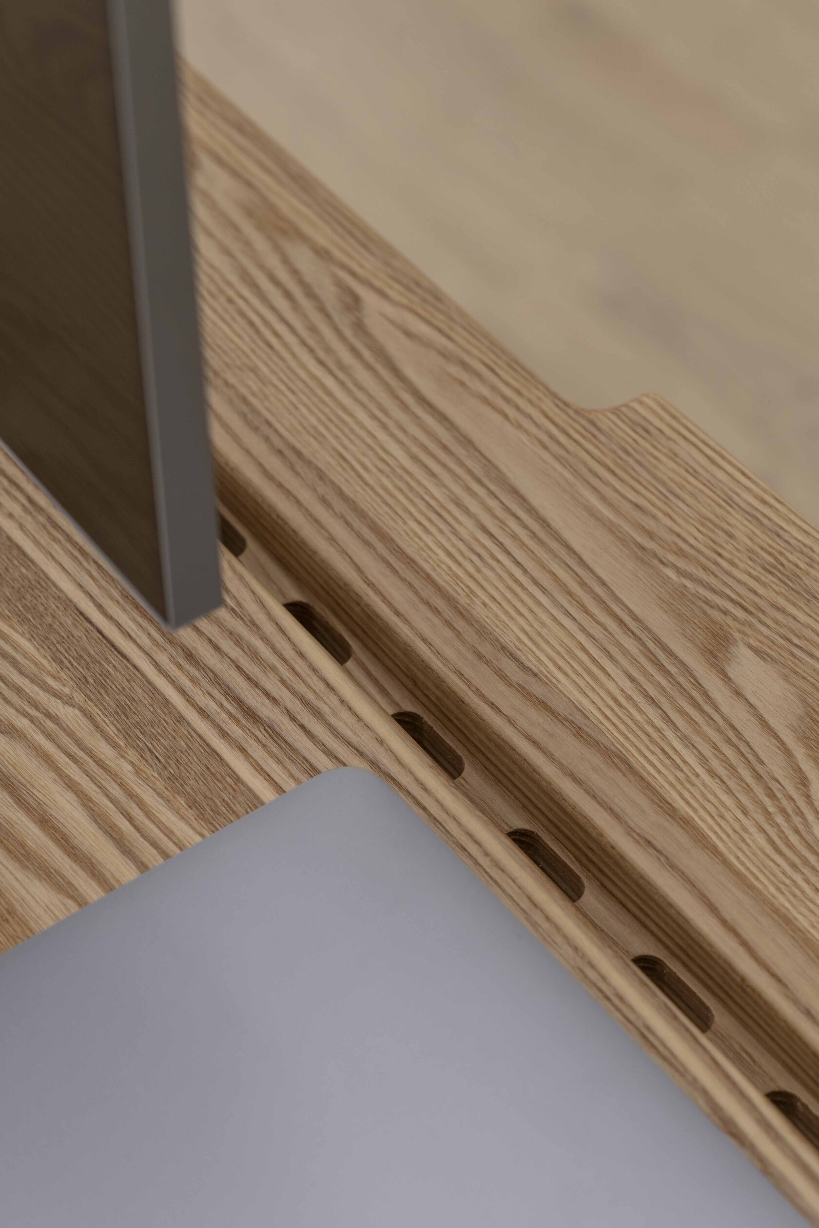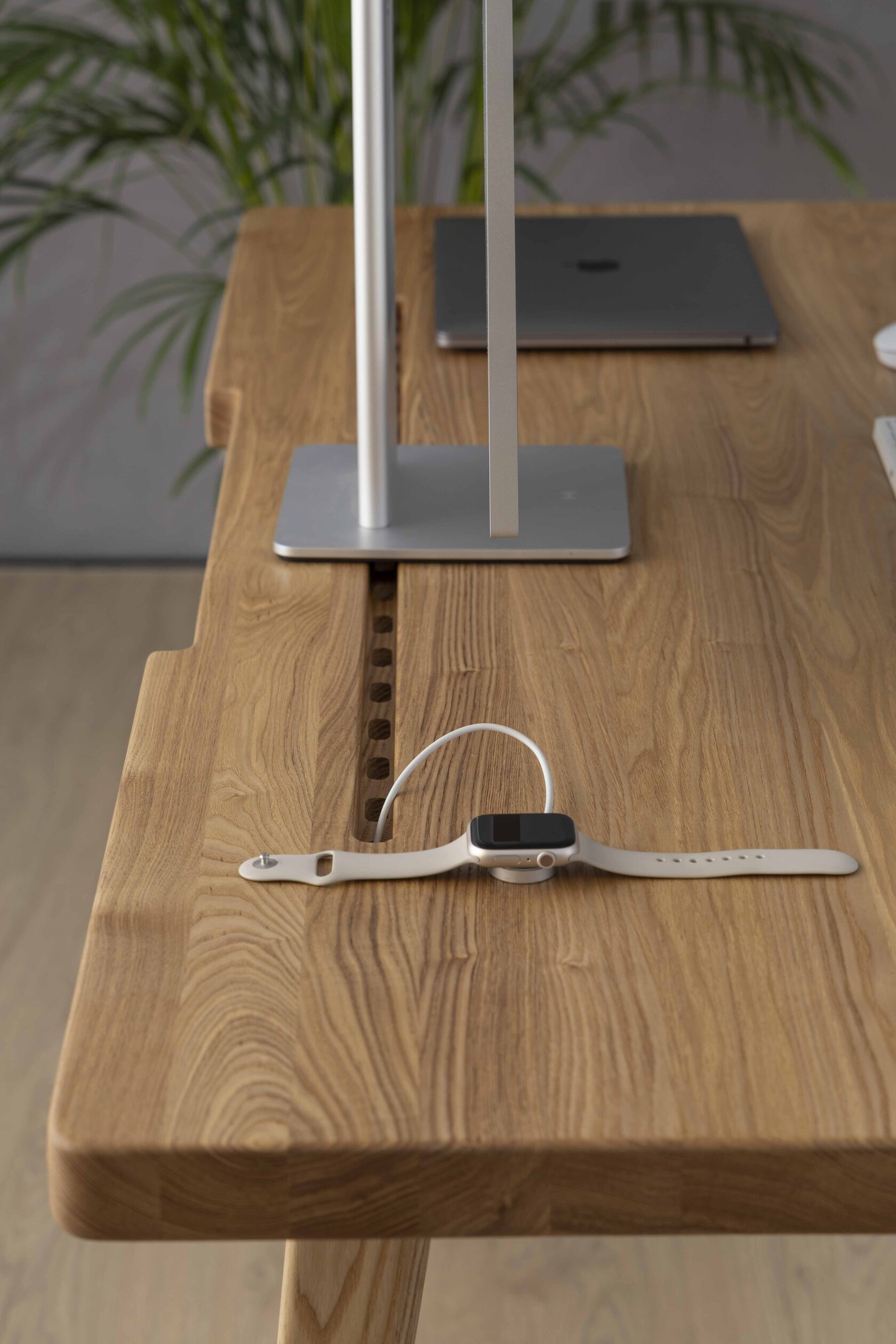 Для подключения устройств и аксессуаров на столе созданы минималистичные отверстия, сохраняющие лаконичность поверхности