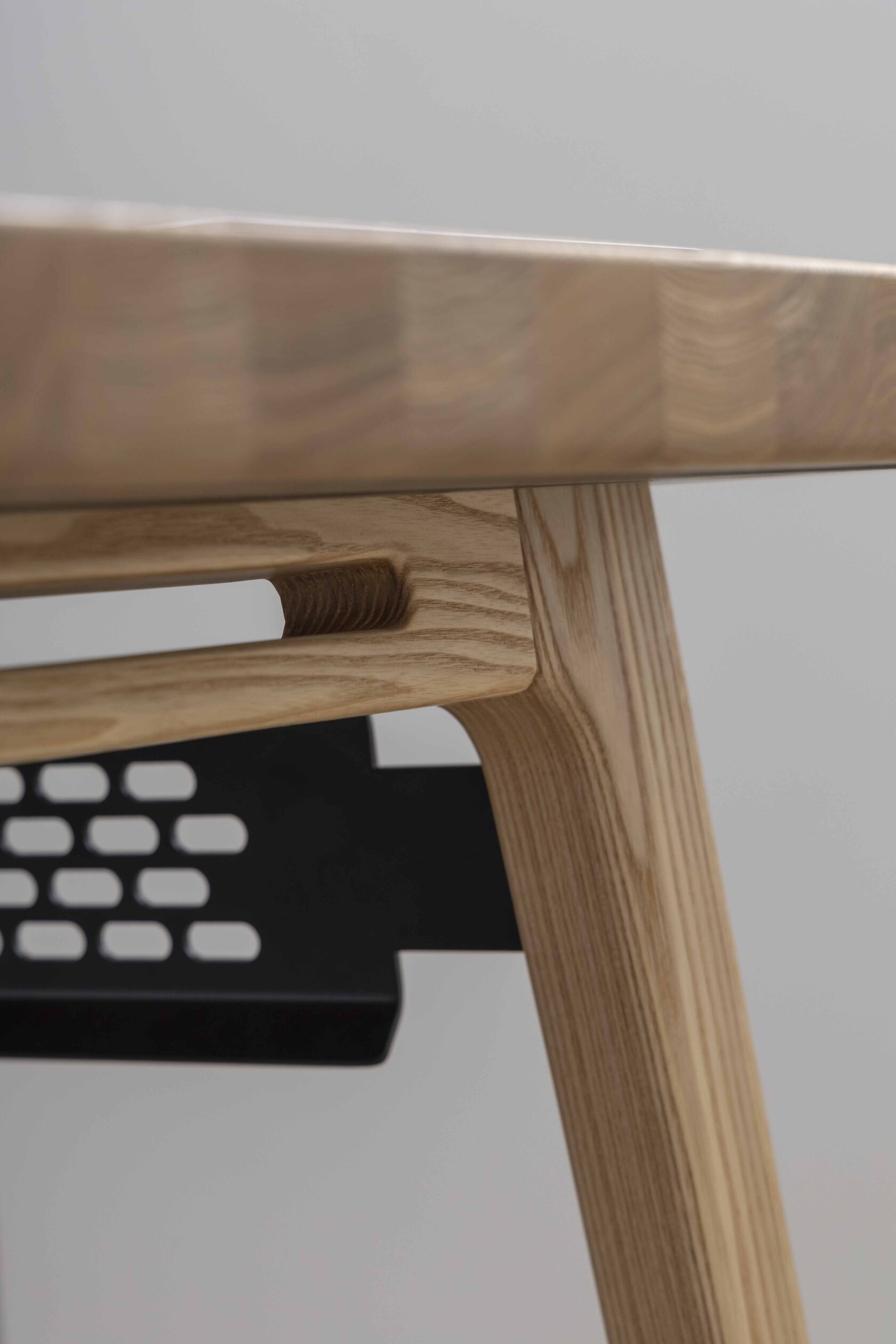 Ножки стола изготовлены из цельного массива ясеня, а столешница из цельноламельного щита дальневосточного ясеня толщиной 40 мм. Именно этот сорт древесины имеет приятный оттенок и роскошную текстуру.